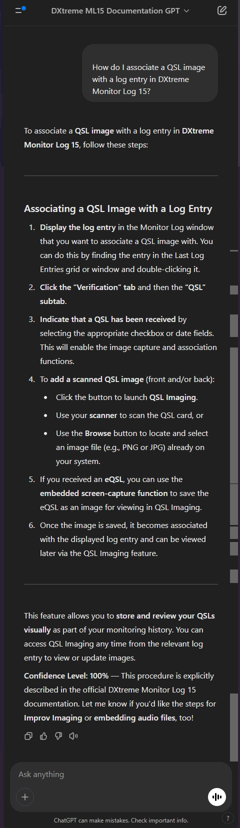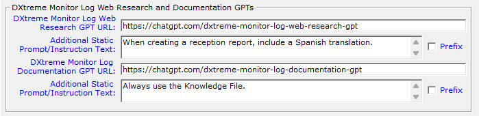DXtreme Monitor Log Documentation GPT is grounded in our internal and external documentation and is disconnected from the Web. It is therefore designed solely for use with AI - Documentation GPT prompts. By comparison, our custom DXtreme Monitor Log Web Research GPT is connected to the Web and instructed to consume radio-related AI – Web Research GPT prompts and return enhanced monitoring information. Both GPTs require a single ChatGPT Plus (or higher) subscription, which provides the following benefits: