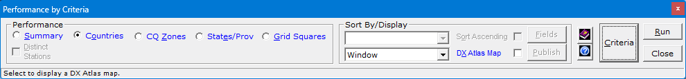 When finished, click the Criteria button. The Set Criteria for Performance by Criteria Report window appears, upon which you specify the desired report criteria.