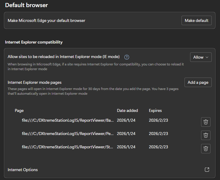 - With your Internet Explorer Mode pages set in Edge Settings, simply